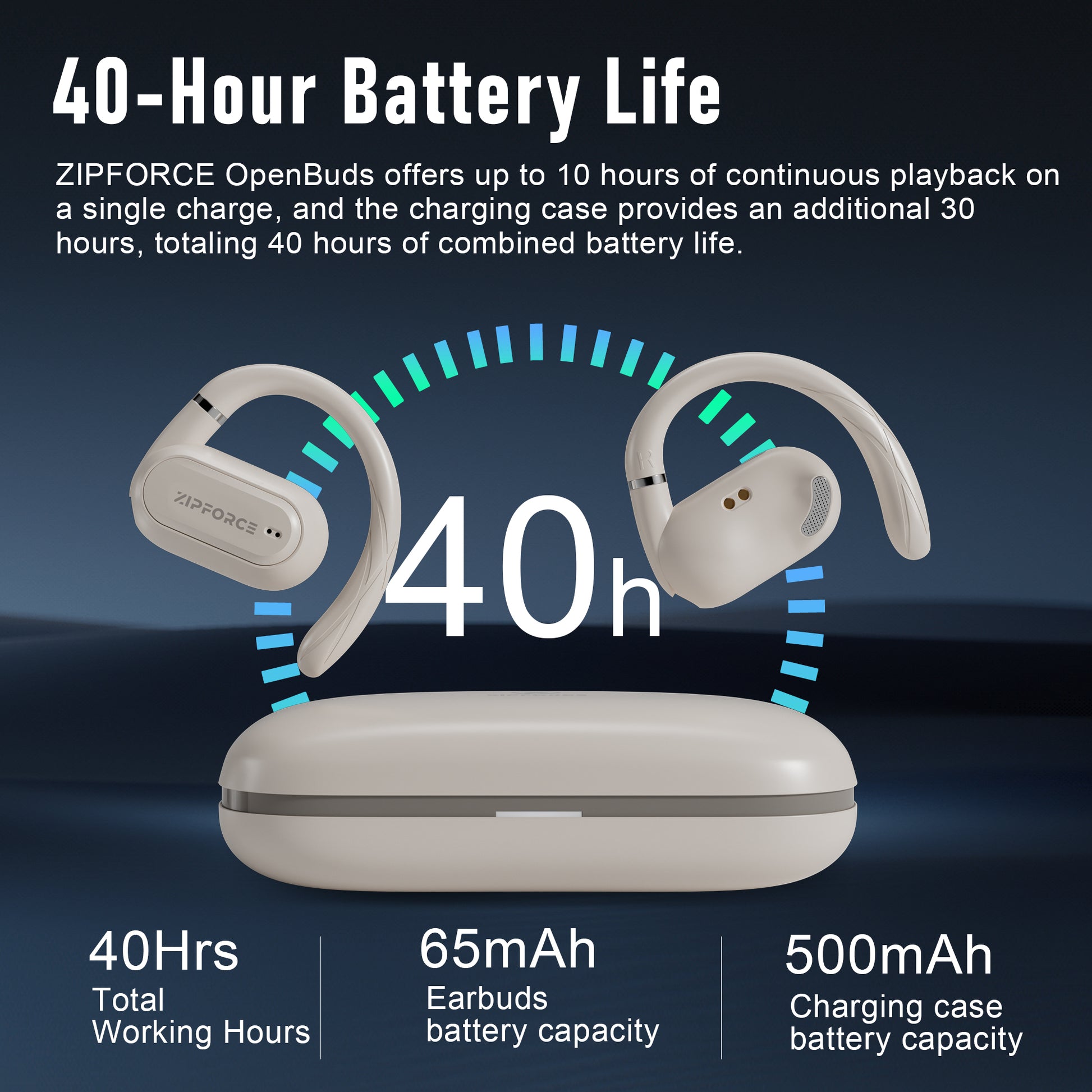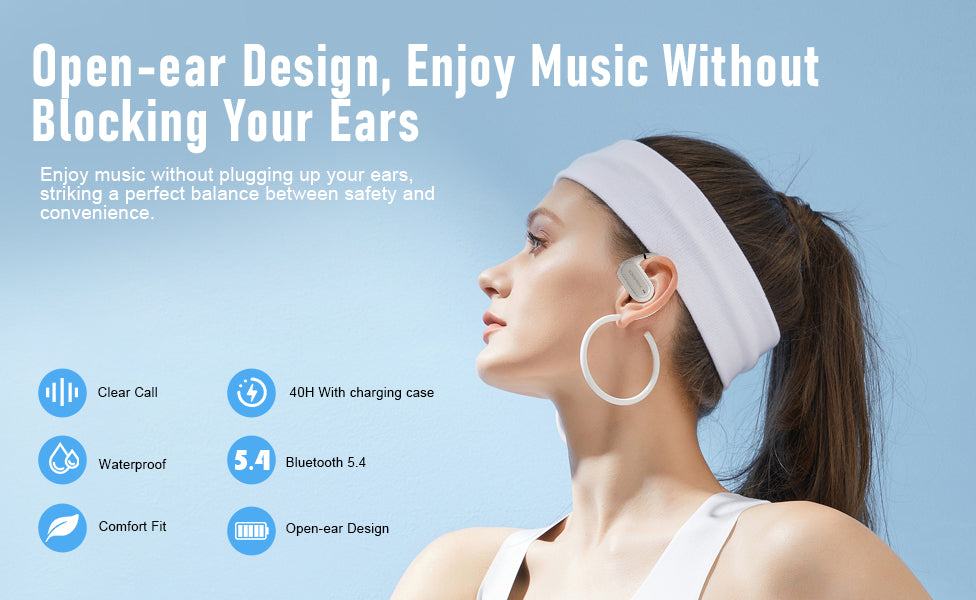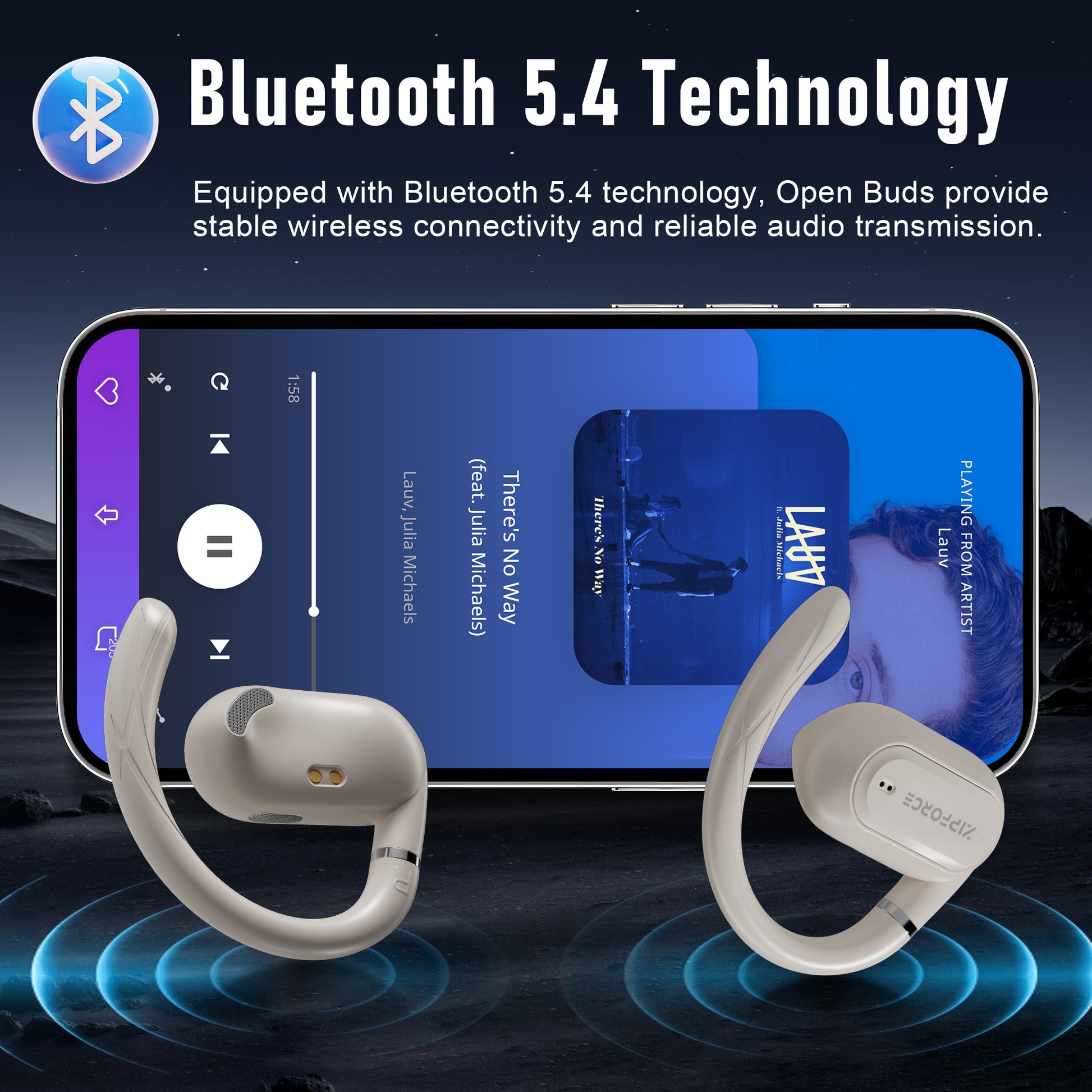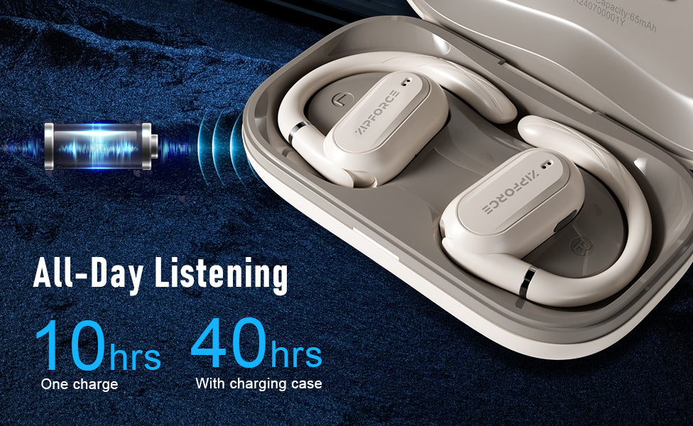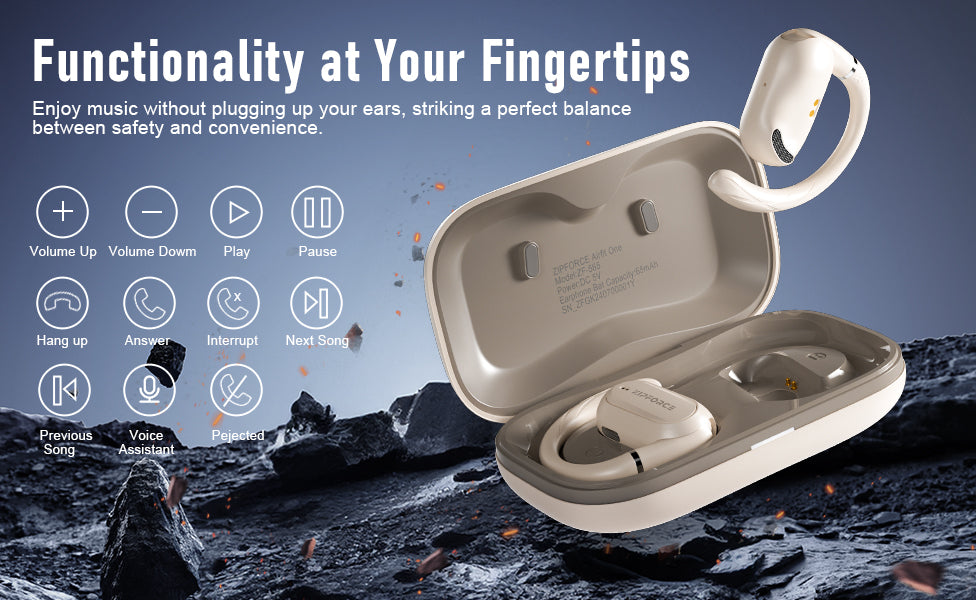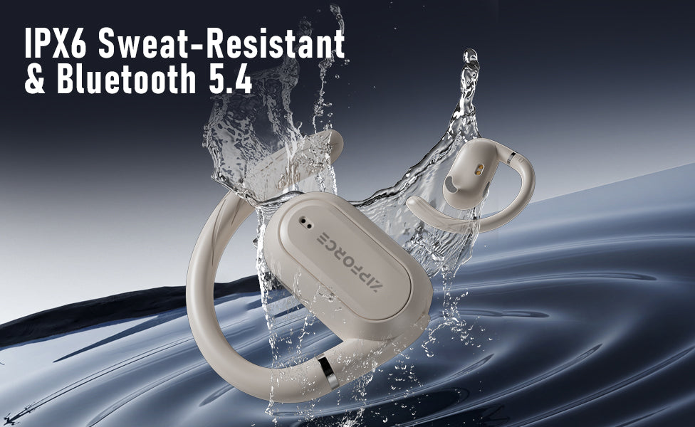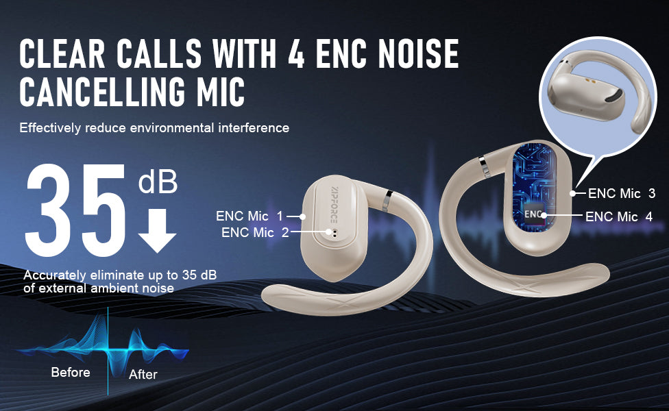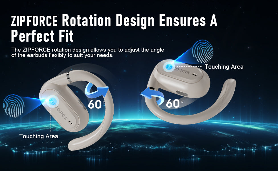 ZIPFORCE True Wireless Earbuds, Open-Ear Bluetooth 5.4 Headphones 4-Mics ENC Clear Call, OWS Bluetooth Earbuds Touch Control, IPX6 Waterproof TWS, Light-Weight Earphones