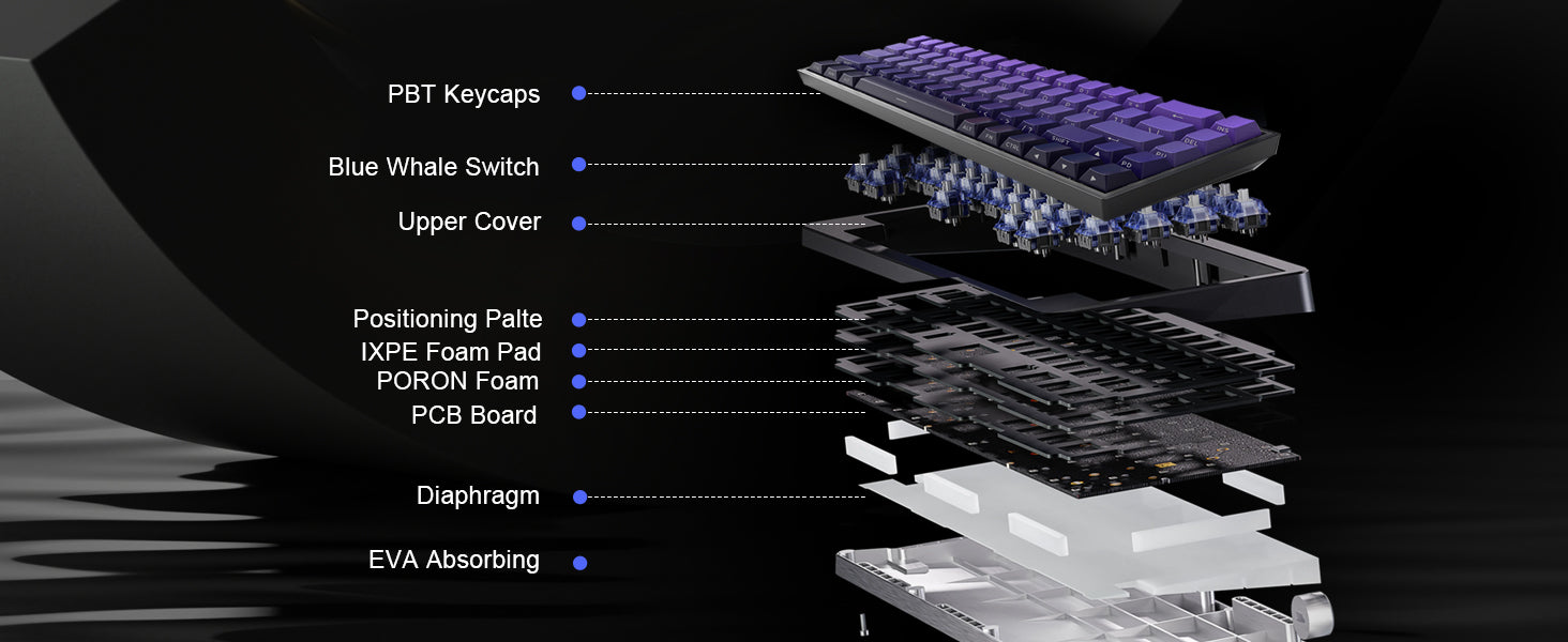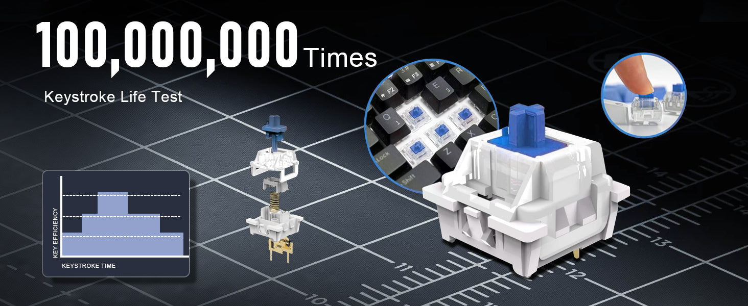 1.【Hot Swappable & Quiet Satellite Blue Switch】Special improved blue switch characterized for being linear and smoother, slight key sound has no paragraph sense with minimal resistance, and easier to tap the keyboard with super responsive speed. Perfect for people who work in an open office and stay up gamers. Strong mechanical hand feel and more than 100 million click tests for excellent durability.