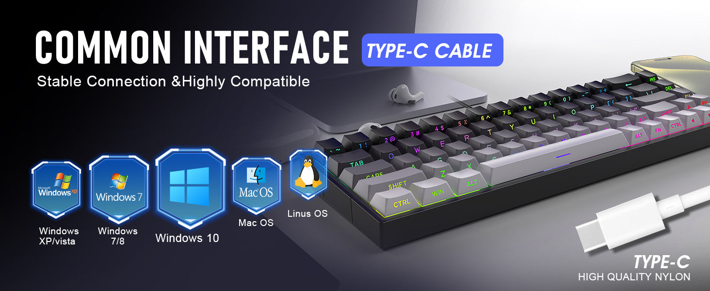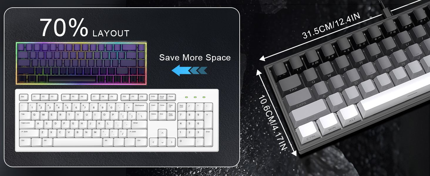 2.【Compact and Portable 68-key Design】Featuring a 68-key layout, this keyboard saves desktop space while maintaining essential functions. Its lightweight and portable design makes it ideal for gamers and professionals on the go. It can be at the matte state after long time gaming. This keyboard offers a light and responsive typing and gaming experience with minimal noise—perfect for both work and play.